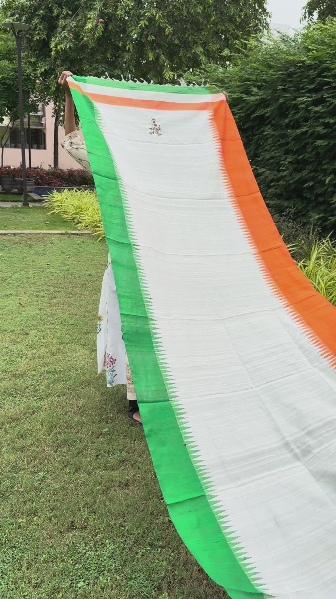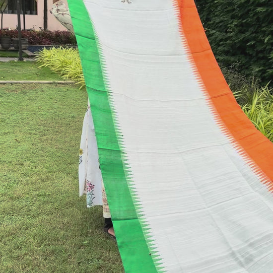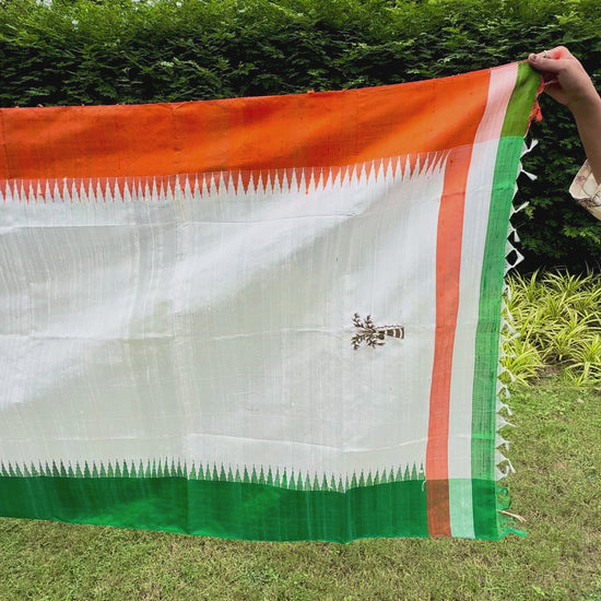 Handwoven in Chhattisgarh, this Tricolour Pure Kosa Silk Dupatta features a simple, elegant plain weave that highlights the natural texture of the fabric. Made from durable Kosa silk, it's a timeless piece that can last for generations and pairs beautifully with any traditional outfit.